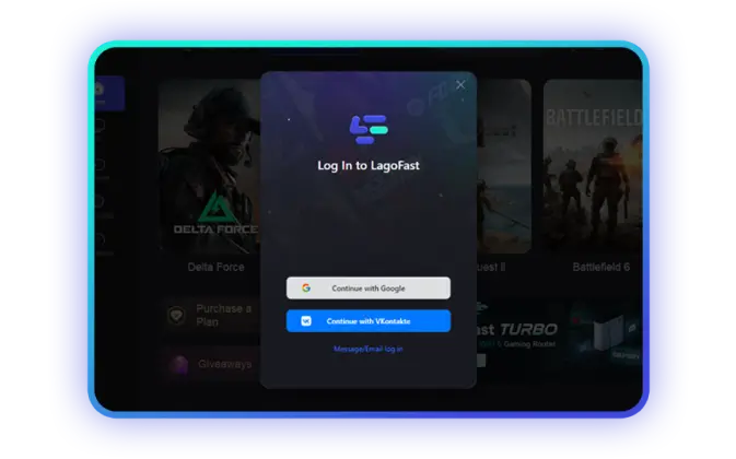 Откройте LagoFast и зарегистрируйтесь/войдите
